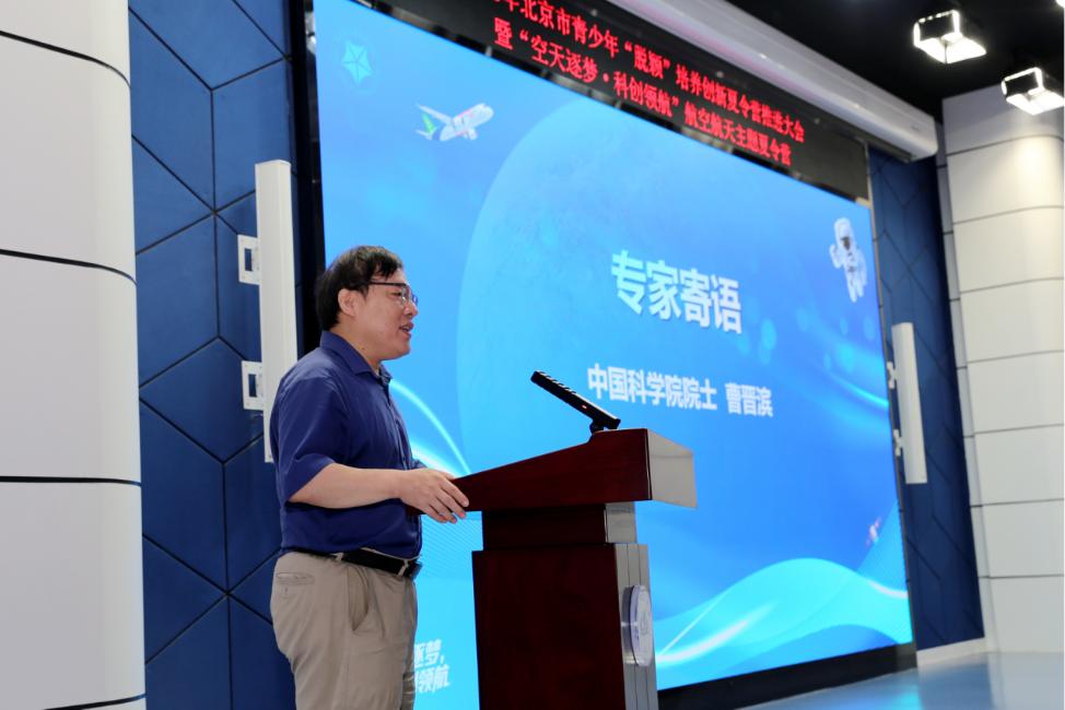 曹晋滨院士作了“太空探索”主题报告,结合自身科研经历,勉励青少年树立家国情怀,勇攀科学高峰。刘晋副总师带来了“中国载人航天发展”主题报告,通过弘扬航天精神,鼓励营员们逐梦星辰大海。及时勉励同学们的昌平区高阳副区长将科学家报告会推向了高潮。