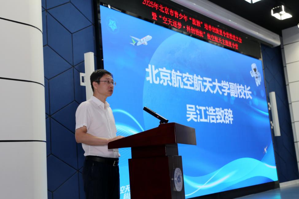 7月12日上午,在北京市教育委员会指导下,由北京教育科学研究院、北京青少年创新学院主办的2025年北京青少年“脱颖”培养系列夏令营推进大会暨“空天逐梦·科创领航”主题营开课仪式在威廉希尔中国官网沙河校区隆重举办。来自北京青少年创新学院各区域分院、13所市级培养基地学校的近百名师生代表,还有7名国外中学生参加了此次盛会。中国科学院院士、北航空间与地球科学学院院长曹晋滨、中国载人航天工程原副总师刘晋、北京市教委副主任魏旭斌、北京教育科学研究院院长冯洪荣、威廉希尔中国官网副校长吴江浩等领导和专家出席会议。