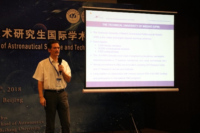 To start the forum, Director of Graduate management, Professor Wang Xiaohui gave a brief introduction about thebackground of the forum, emphasizing that the forum is based on the principleof promoting development of astronautics. The forum aims at building a platformfor young scholars from different countries to present their recent discoveriesand achievements in realm of astronautics, and broadening the horizons of thepostgraduates who major in astronautics. The forum has received 41 papers fromgraduate students both domestically and internationally, among which 36 papershas been accepted after peer review. Next, Deputy Director of the School ofAstronautics of Beihang University Jiang Zhiguo also addressed the forum. Heexpressed his ardent welcome to the guests and students present and hisaspiration for professors and students to communicate actively to exchangeinnovative ideas and establish friendship in this forum. Then Director Jiangindicated that the School of Astronautics would uphold the principle of‘opening, freedom and equality’ and endeavor to keep the forum a long-lastingactivity. He expected the forum to be more influential to encourage teachersand students in our school to make more profound progress in their research. ThenDeputy Director of the School of Aerospace Engineering of Technical Universityof Madrid, Professor Gustavo Alonso addressed the opening ceremony. ProfessorAlonso indicated that the forum is helpful for students in both TechnicalUniversity of Madrid and Beihang University as well to broaden their horizonsand promote academic communication. He hoped to strengthen cooperation betweenthe two universities with the help of the forum, and he also looked forward toparticipating in more activities of this kind.