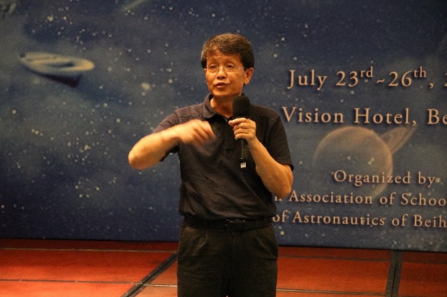 The Opening ceremony of the 2nd BUAAInternational Postgraduate Academic Forum of Astronautical Science andTechnology was held in Kunlun Hall of Beihang Vision Hotel at 9:00 a.m. July 23rd,2018. It is hosted by School of Astronautics, BUAA. The forum invites YePeijian, who is the Academician of the Chinese Academy of Sciences &Researcher of the China Academy of Space Technology, to deliver the keynotespeech. Later on, Professor Huang Jiangchuan, the chief engineer of the ChinaAcademy of Space Technology, and Professor Gustavo Alonso Rodrigo, the deputydirector of the School of Aerospace Engineering from Technical University ofMadrid presented their expert reports respectively. The forum invited ProfessorChangduk Kong from Chosun University, Professor Hyun-Ung OH from ChosunUniversity, Mr. Wang Shuo, the director from the China Academy of SpaceTechnology, Ms. Lu Tingting, the director from Beijing Mechanical andElectrical Engineering General Design Department, Professor Wang Zhaokui, theassociate research scientist from Tsinghua University, Professor Xie Kan fromBeijing Institute of Technology, Professor Cao Jinbin , the dean of the Schoolof Space and Environment, Beihang University, Professor Huang Hai, the AsiaPacific Space Cooperation Asteroid Project technical expert and professor ofBeihang University, Professor Yu Yang from Beihang University, Professor Yang Lijun, the dean of theSchool of Astronautics, Beihang University, Professor Jiang Zhiguo, the vicedean of the School of Astronautics, Beihang University, Professor Wang Xiaohui,the director of Graduate management of the School of Astronautics, BeihangUniversity, Professor Chen Shenyan and Professor Wang Xinsheng from the Schoolof Astronautics of Beihang University and other domestic and internationalexperts . Besides, there were about 90 graduate students from the School ofAstronautics, the International School of Beihang University and otheruniversities at home and abroad attending the opening ceremony.