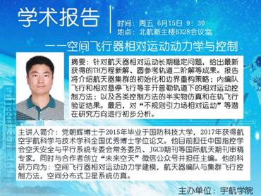 学术报告开始前,师鹏老师首先介绍了党朝辉博士的学术经历和科研成果。党朝辉博士于2015年毕业于国防科技大学,获工学博士学位。其博士论文“航天器集群边界建模与控制方法研究”获得2017年航空宇航科学与技术学科全国优秀博士学位论文。目前担任中国指控学会空天安全与平行系统专委会常务委员、JGCD期刊等国际航天期刊审稿专家,同时与合作者创立“未来空天”微信公众号并担任主编。党朝辉博士的科研方向为:空间飞行器相对运动动力学建模,航天器编队与集群飞行控制方法,空间分布式卫星系统仿真。党朝辉博士在航天动力学领域取得了诸多创新性成果,例如获得了相对运动的经典动力学TH方程的第三组独立解析解,为编队飞行、交会对接提供了重要的基础理论。