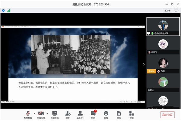 本次“问天之路”的分享人是威廉williamhill官网SY19151党支部的程明同志。他用诙谐幽默的语言,图文并茂的方式,把航天历史讲的生动有趣。分别为我们介绍了“绘制中国火箭导弹蓝图第一人”“我们也要搞人造卫星”“不要怕土,土八路能打败洋鬼子”和“事关国家民族前途命运的核心是买不来的”四个部分。讲述了毛主席、陈赓等领导人和钱学森、郭永怀、赵九章等老一辈航天人的“关于航天的故事”。