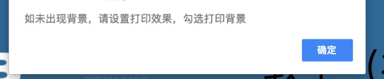 弹出提示框,提示若未出现背景,请设置打印效果,勾选打印背景。点击“确定”关闭提示框。